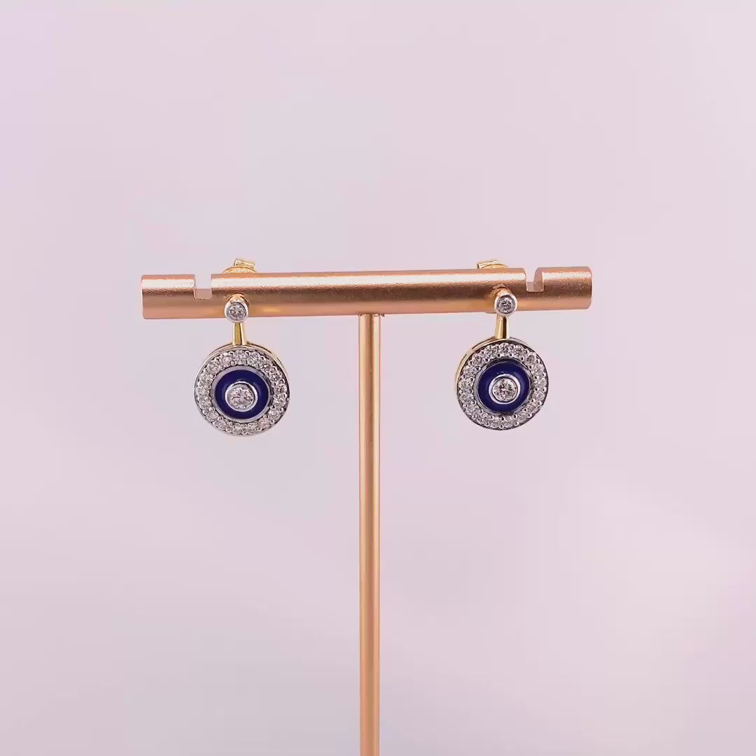 Looking for earrings that feel meaningful and look amazing? These evil eye drops do both. With a deep blue enamel center and a halo of shimmering lab diamonds, they’re made to protect your energy while elevating your look—day or night. Lightweight, versatile, and full of intention, they’re a piece you’ll actually *want* to wear every day.