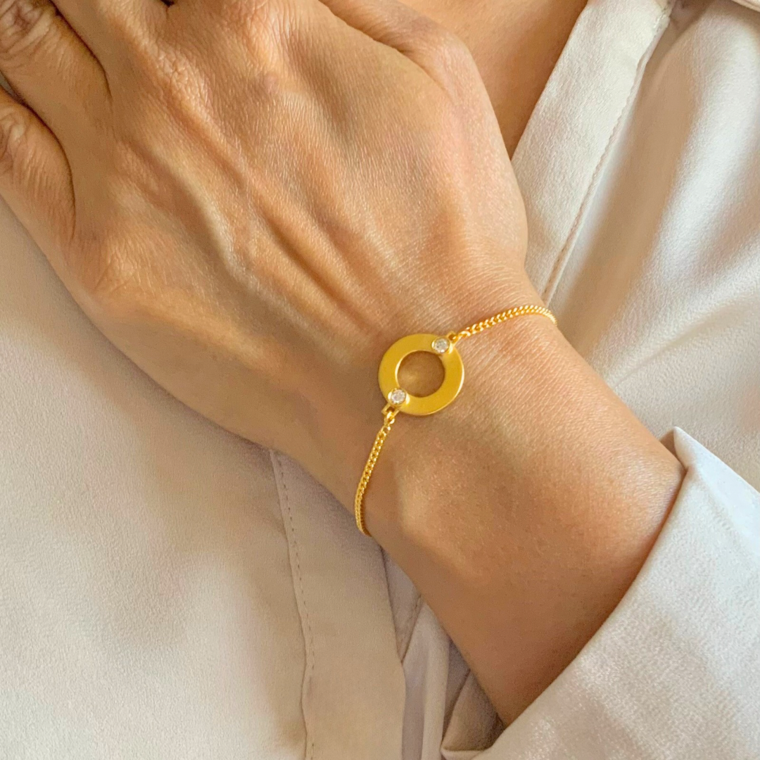 This Circle Charm Bracelet is just that. It’s got a clean, classic look with its sleek circle centerpiece—but the little star charm keeps it from feeling too serious. It’s super light, super easy to wear, and goes with literally everything.