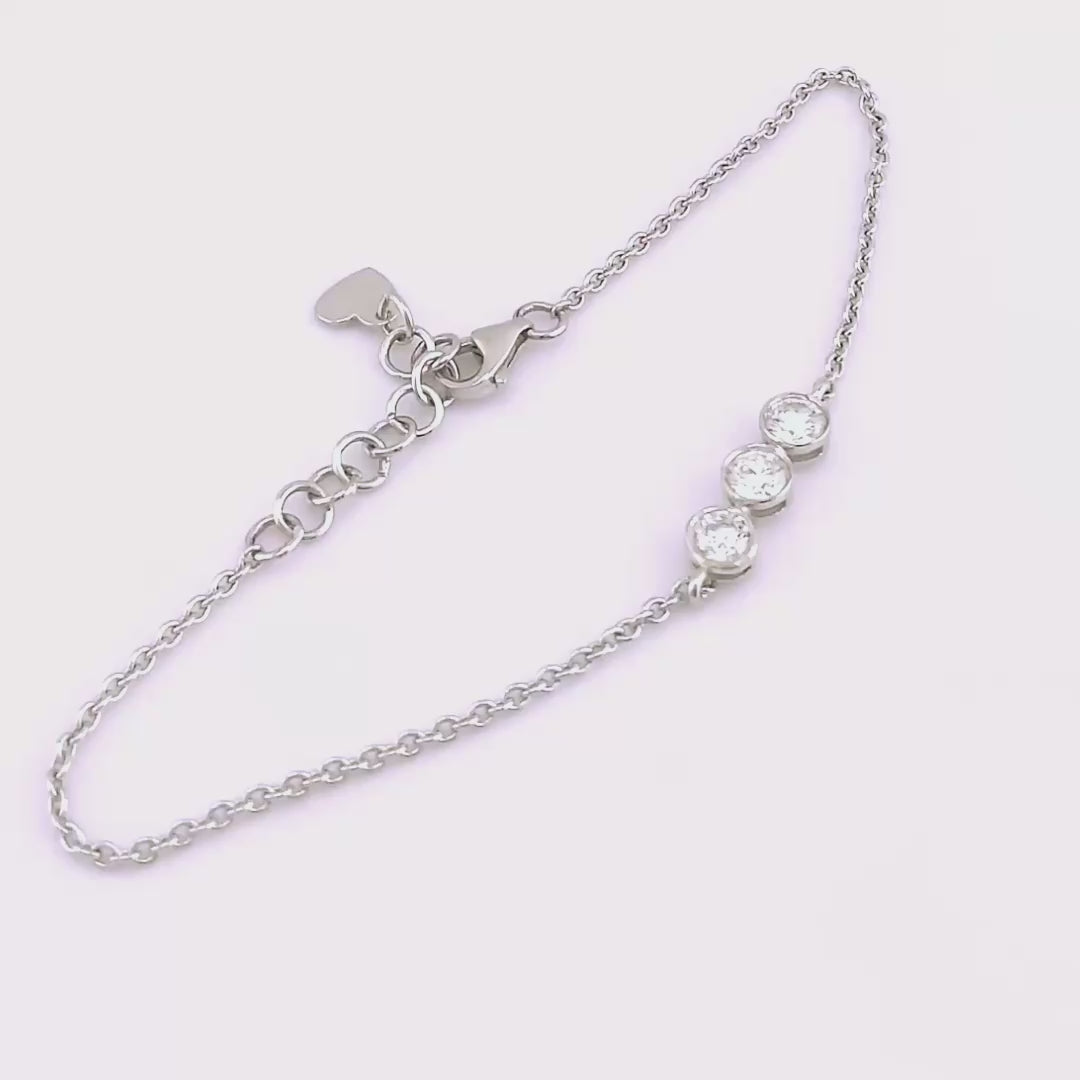 Three bezel-set diamonds, perfectly aligned to bring balance, brilliance, and beauty to your every day. Set in 14K gold with a delicate chain, this bracelet is light on the wrist and big on shine—effortlessly elegant, endlessly wearable.
