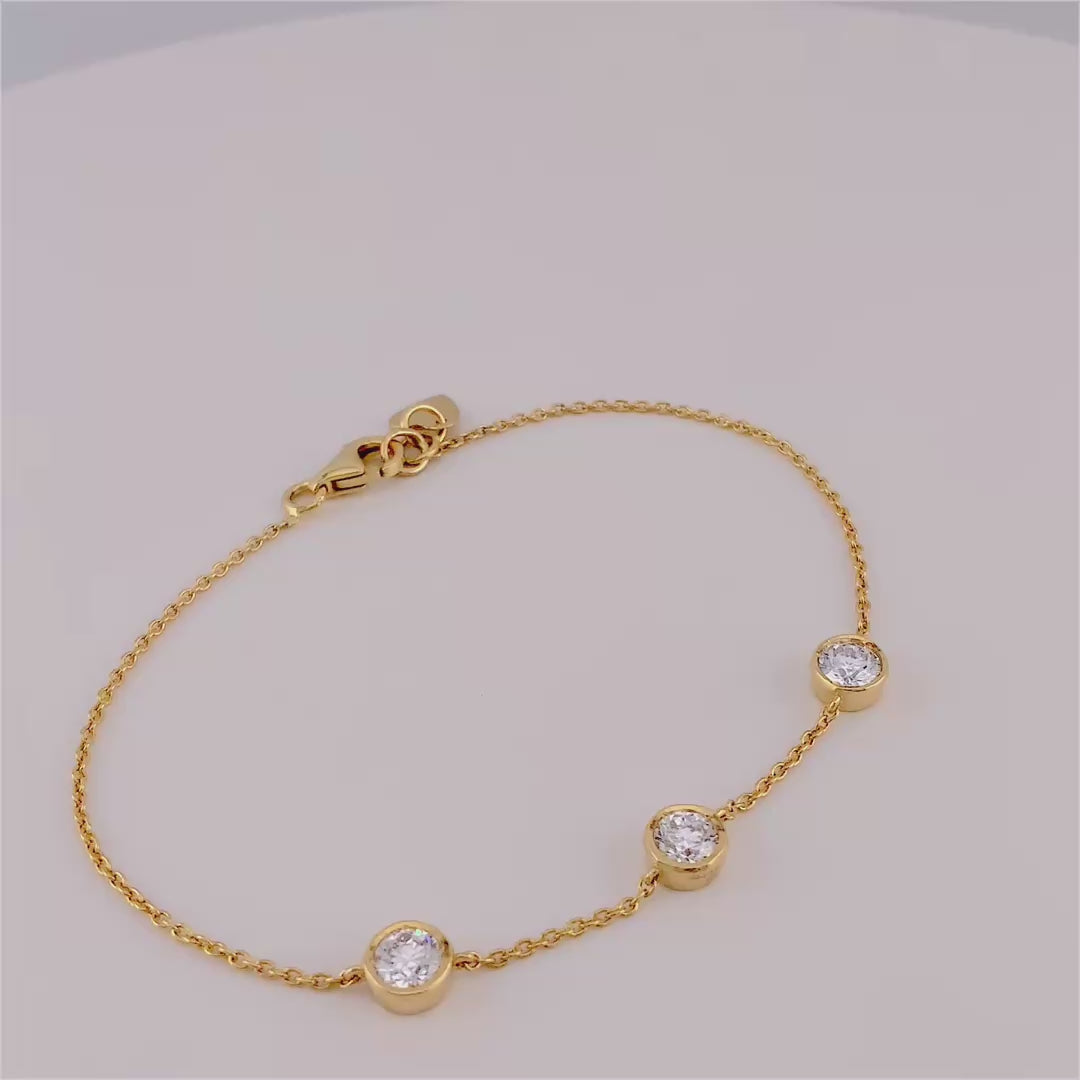 Three perfectly spaced bezel diamonds that add just the right amount of sparkle—light, elegant, and easy to wear every day. The smooth settings sit flat on your wrist, and the delicate 14K gold chain feels comfortable from morning to night. Simple, timeless, and so effortless, it’s the bracelet you’ll reach for without even thinking.
